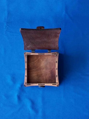 Our jewellery boxes are laser cut hand sanded and stained with spirit satins and assembled by hand . They are made from poplar wood with a birch veneer. no nails, screws or metal hinges only wood